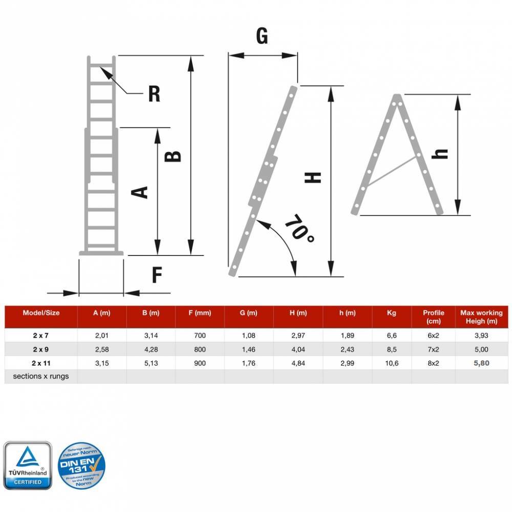 High Quality 2 section combination aluminium ladder