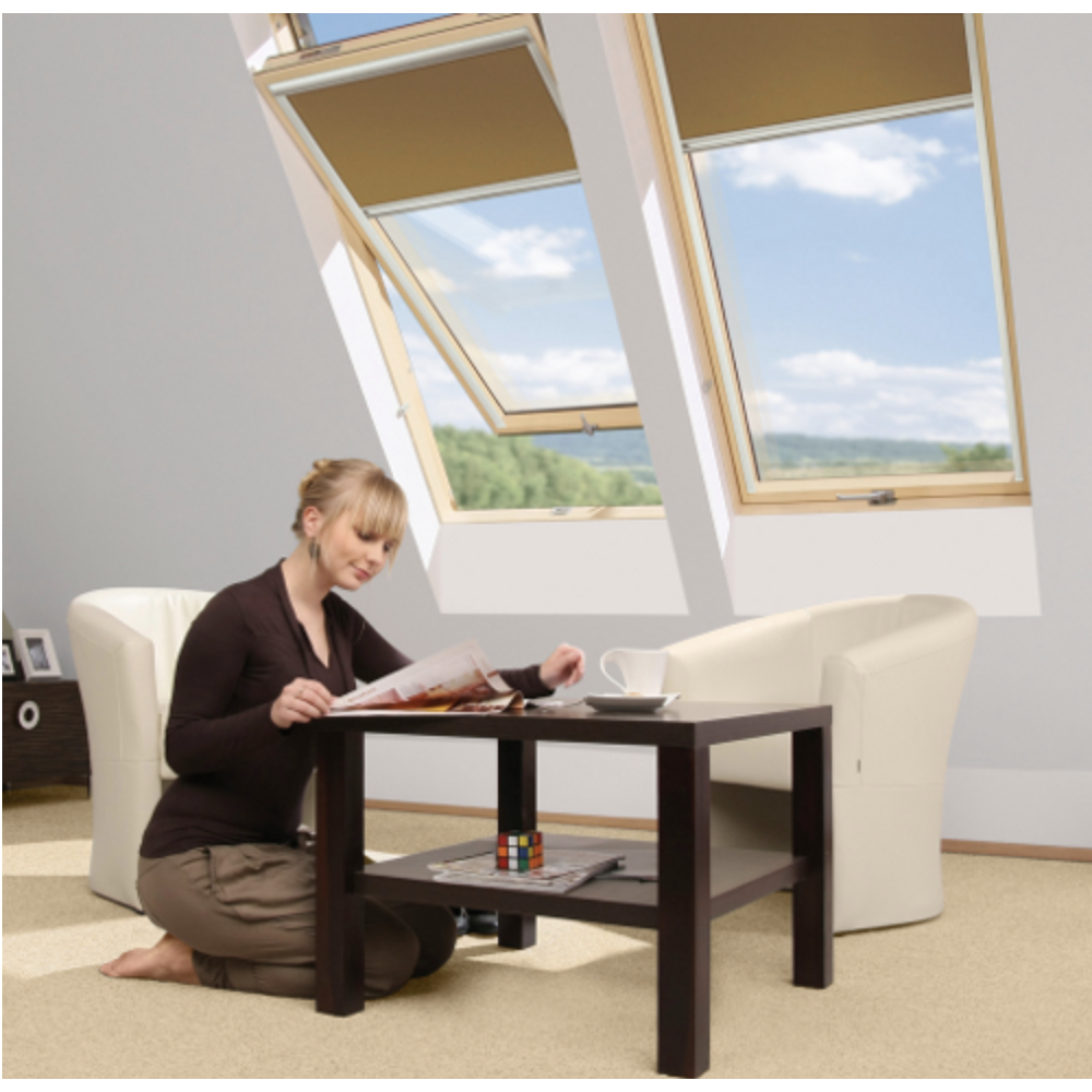 The ORF roller blind is perfect accessory for OptiLight roof windows and Fakro roof windows. It is equipped with side guides that cover the space between the blind fabric and the window sash which allows for complete blackout in the room. The blind features a system of strings which ensures parallel guiding the lower bar and positioning it at any point up the window, thus contributing to the possibility of gradual reduction of incoming light.