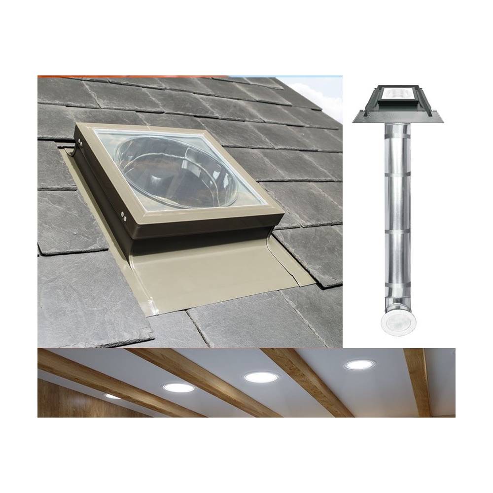 The light tunnel consists of: roofing element, Rigid Light Transmitting Tube for slate Roof 2.1m long, ceiling frame,
