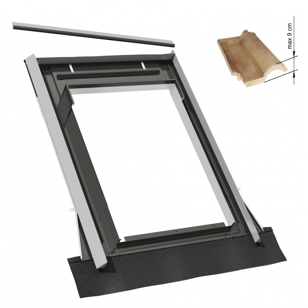 Universal OKT flashing allows the window to be connected to flat and profiled roofing materials up to 9 cm in profile.