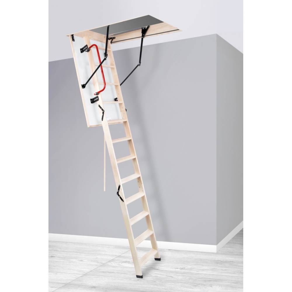 This three-section folding ladder is made of pine wood and is incredibly useful and dependable. It may be folded to conserve room, has good handrail that make it easier to use, and has a hatch that insulates the home well and uses less energy. For greater longevity, dovetail joints were employed to suit the treads, and they have unique grooves that prevent slippage. The maximum load while in use is 160 kg.