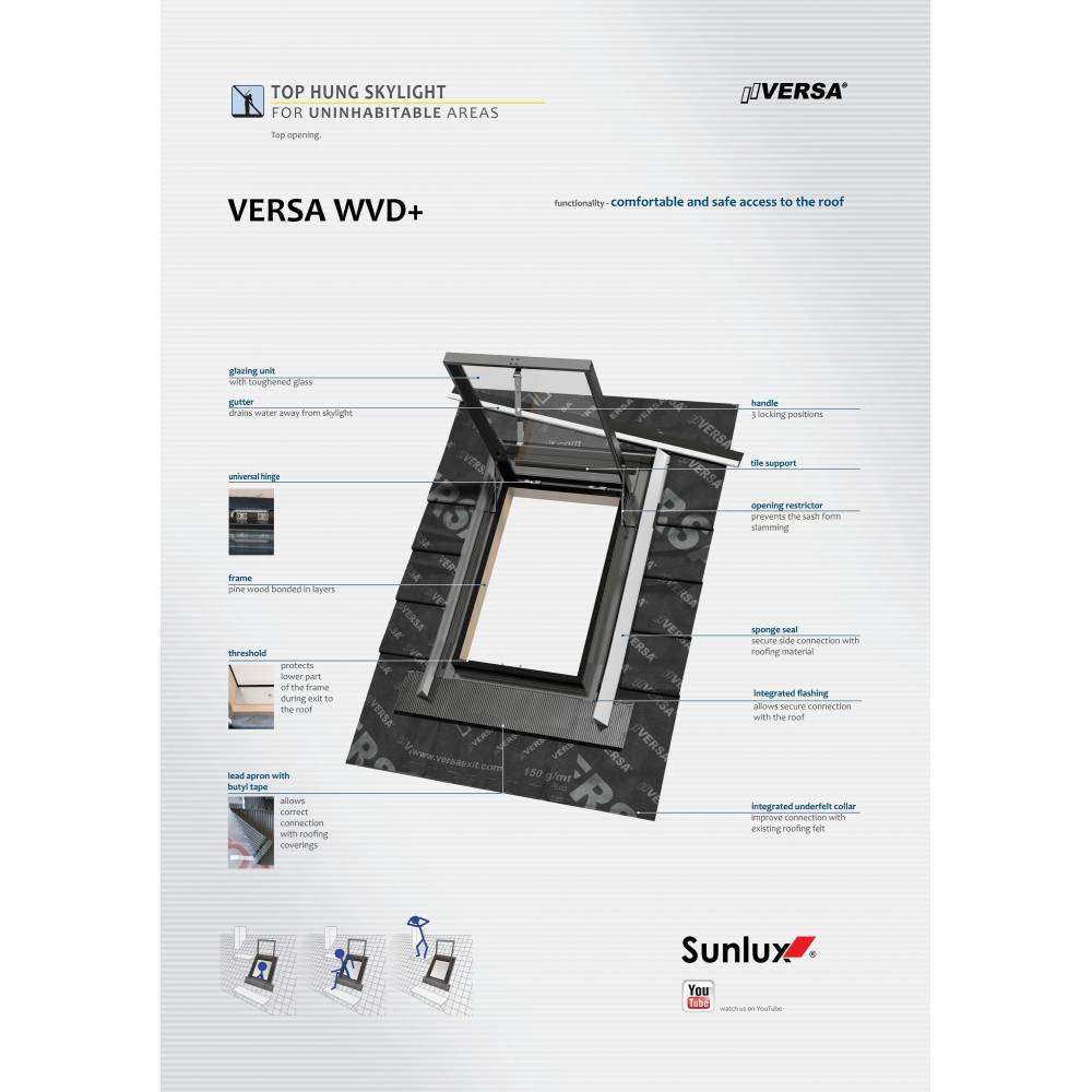 Versa Skylight WVD+ is an access window designed to provide ventilation and light for uninhabited and unheated loft spaces. It enables easy access to the roof and provides good lighting.