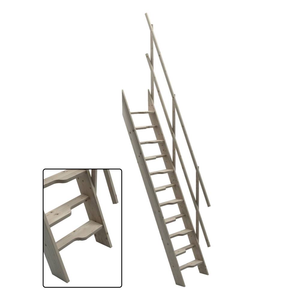 Staircases are made of real natural conifer and may have some visible knots. Some knots may be filled with a wood filler during the manufacture process.