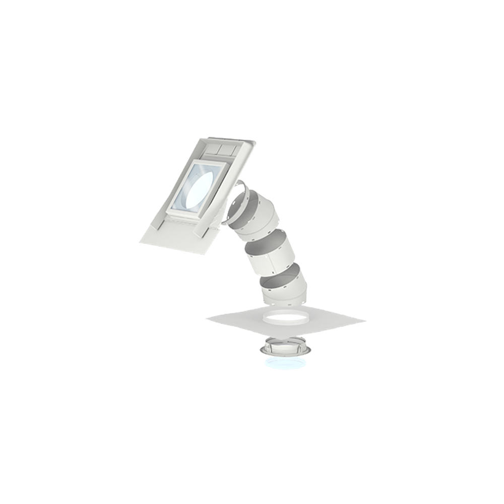 The VELUX flex tunnels and rigid tunnels provide installation flexibility. Flex tunnels can be used when the distance between the roof and the ceiling is too small for a rigid tunnel. Rigid tunnels deliver a straight shaft of light for when the ceiling is placed directly under the exterior window.