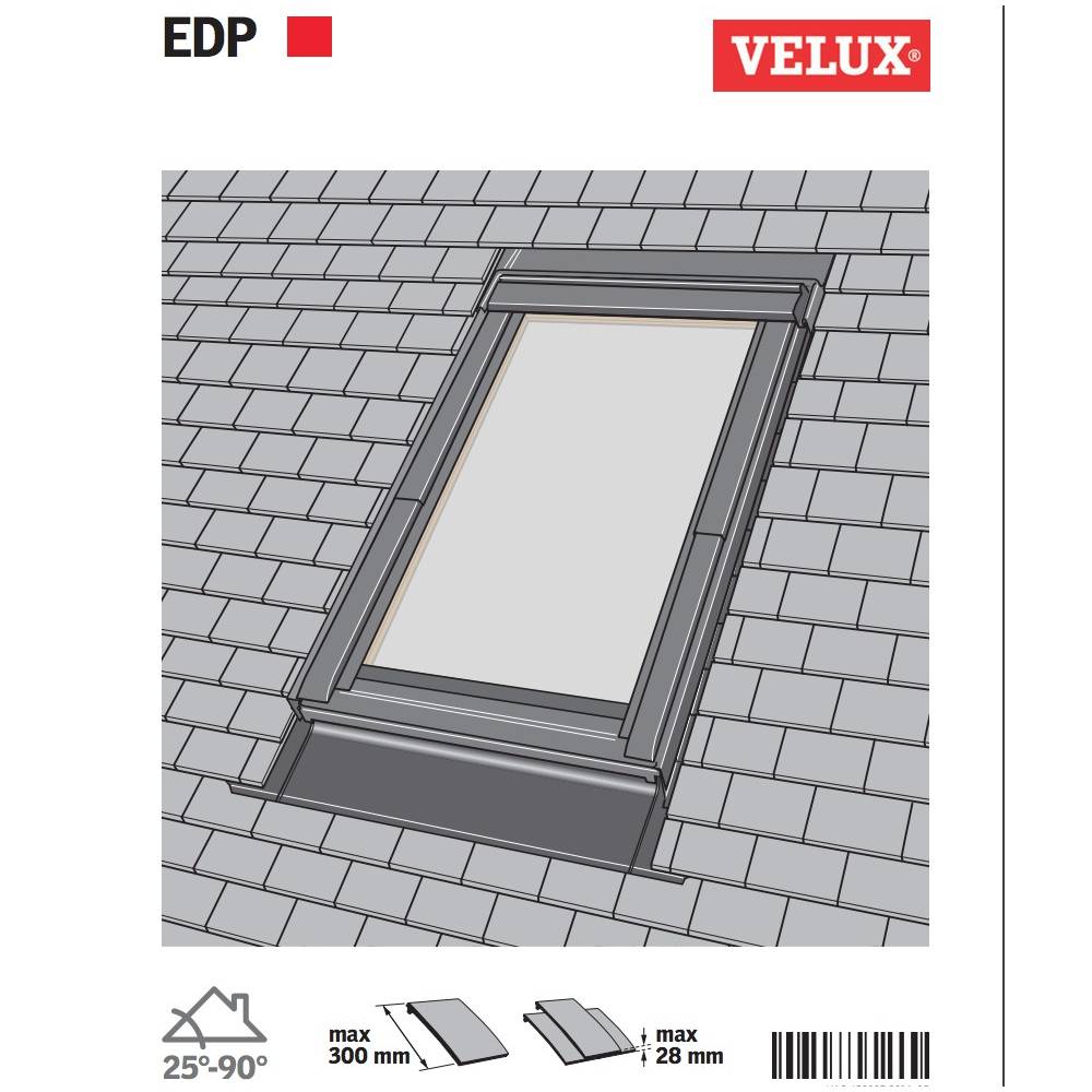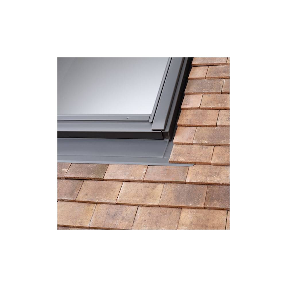 VELUX flashings integrate with the roof covering to provide a weather-tight finish around the window. They are compatible with any plain tile (up to 15mm thick). Window flashings are designed to sit under the roofing materials, and then the water from the roof is collect in the built-in guttering system. The gutter overlaps a second section of the flashing to help the water flow smoothly down the side of the window. The flashing apron moulds to the roof material profile to allow the water to drain away.