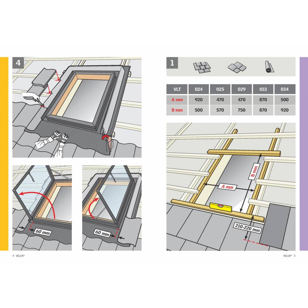 The Velux skylights comes with integrated flashing so you do not need to buy a separate installation product. The flashing fits perfectly on tiles and slates too. After removing or trimming the foam gasket you can install the skylight perfectly on slates too. The construction can be fixed and mounted very easily in the roof area.