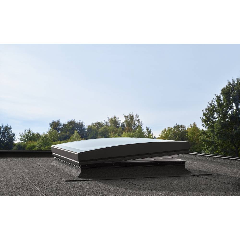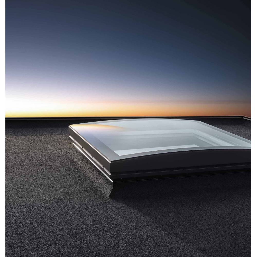 - Mains powered, vented window for flat roofs with curved glass cover